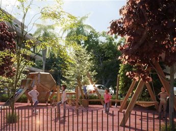 El proyecto ofrece apartamentos con terraza de uno a cuatro dormitorios y una propuesta de áreas comunes, pensadas para compartir, disfrutar y vivir mejor: piscina, rooftop, barbacoa, solárium, gimnasio, kids room y kids club exterior.